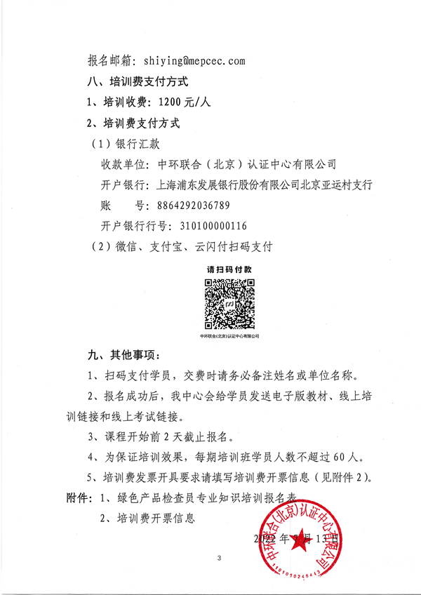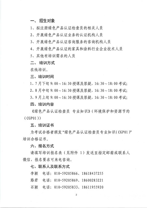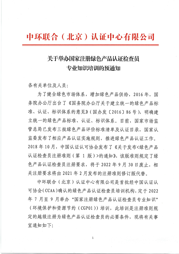 关于举办国家注册绿色产品认证检查员专业知识培训的预通知